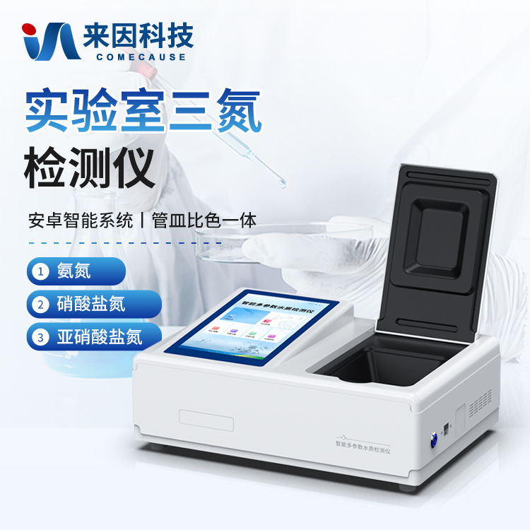 水质三氮检测仪是参考相关标准研发设计制造,本仪器主要检测水质氨氮、硝酸盐氮、亚硝酸盐氮浓度指标,兼具智能数据分析功能,图表、列表显示数据,分析一目了然;高清晰度彩色液晶触摸显示屏,Android智能操作系统,中文显示界面,中英文键盘,人性化操作,使用更简单。