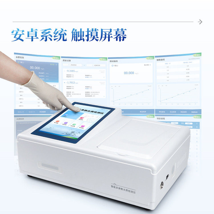 硝酸盐氮检测仪是参考方法《变色酸光度法》研发设计制造,主要检测水质硝酸盐氮浓度指标,兼具智能数据分析功能,图表、列表显示数据,分析一目了然;高清晰度彩色液晶触摸显示屏,Android智能操作系统,中文显示界面,中英文键盘,人性化操作,使用更简单。