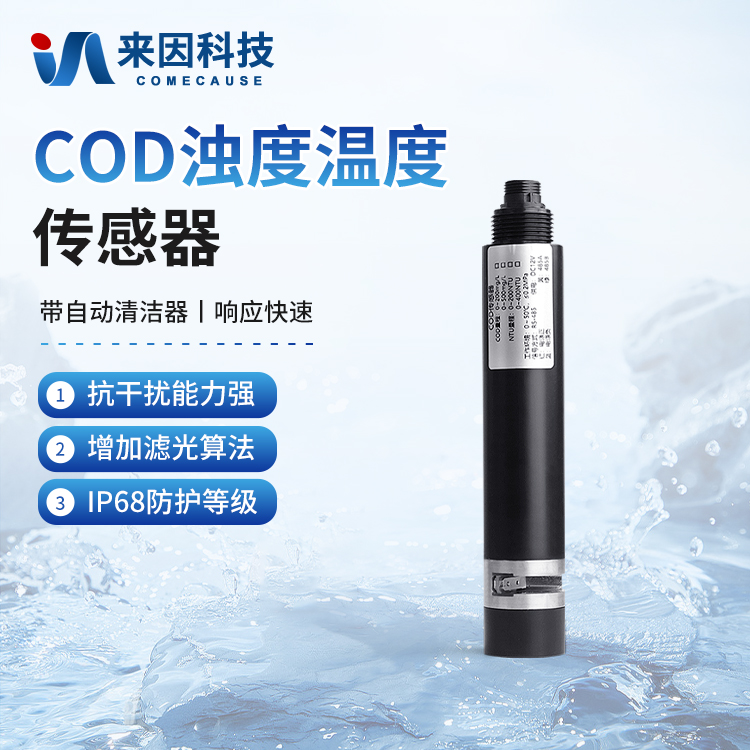 简要描述: 水质在线cod浊度传感器传感器采用两路光源进行测量,一路COD测量,一路浊度测量,因为溶解于水中的有机物对紫外光具有吸收作用,所以通过光源的透射率可以测量出COD数值,一路浊度测量,自动进行浊度补偿,同时采集温度,进行温度补偿。
